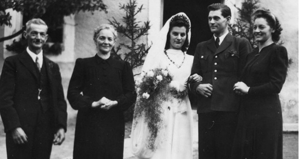 Das Brautpaar Rudolf und Olga Hochmuth mit den Eltern Josef und