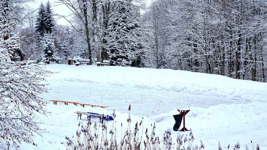 Die von der Gemeinde selbst erstellte Eisbahn am Parkplatz unterhalb der Kirche