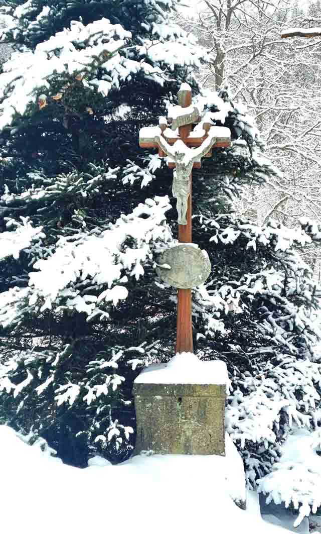 Das Marterl unterhalb der Kirche im Schneekleid